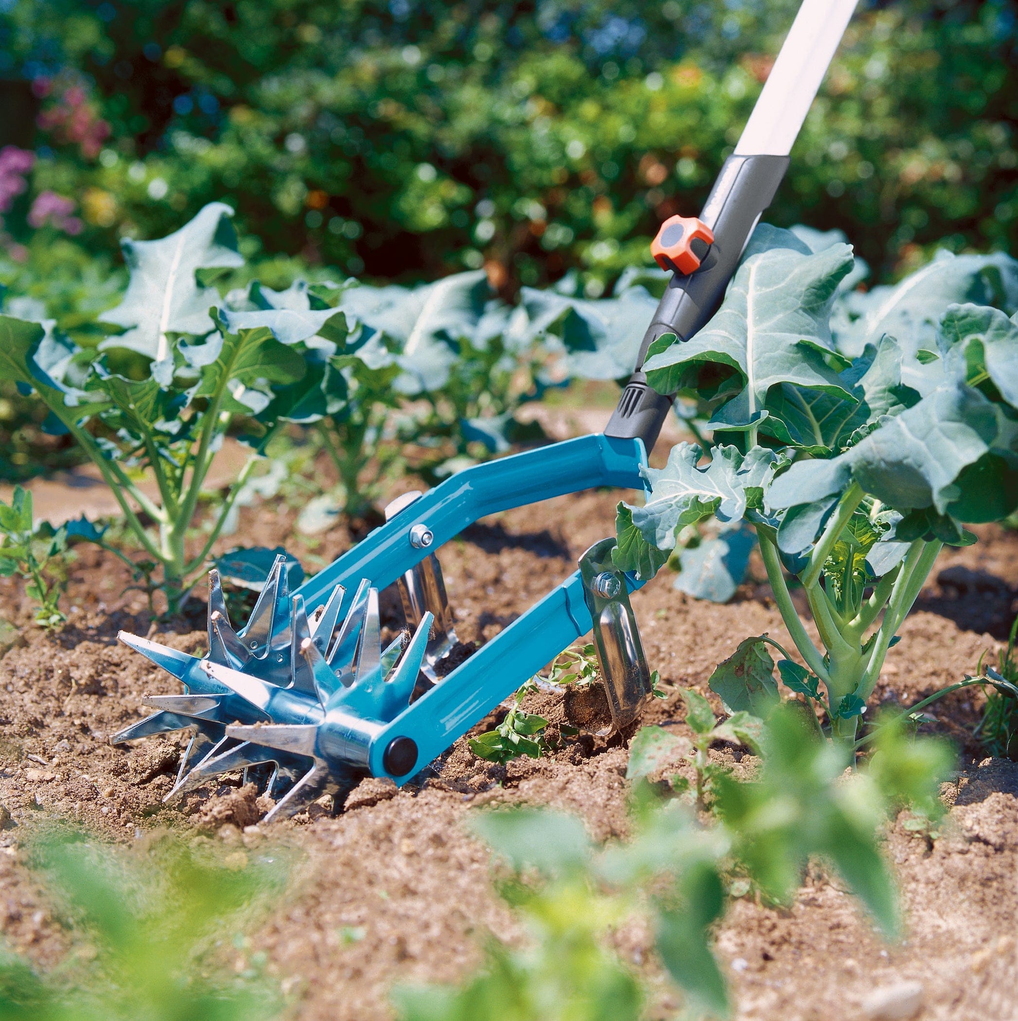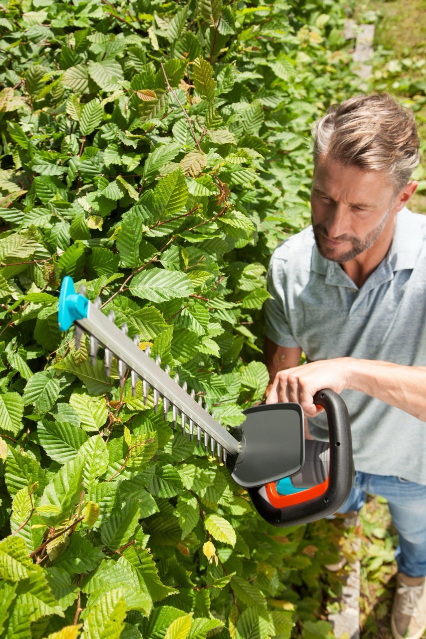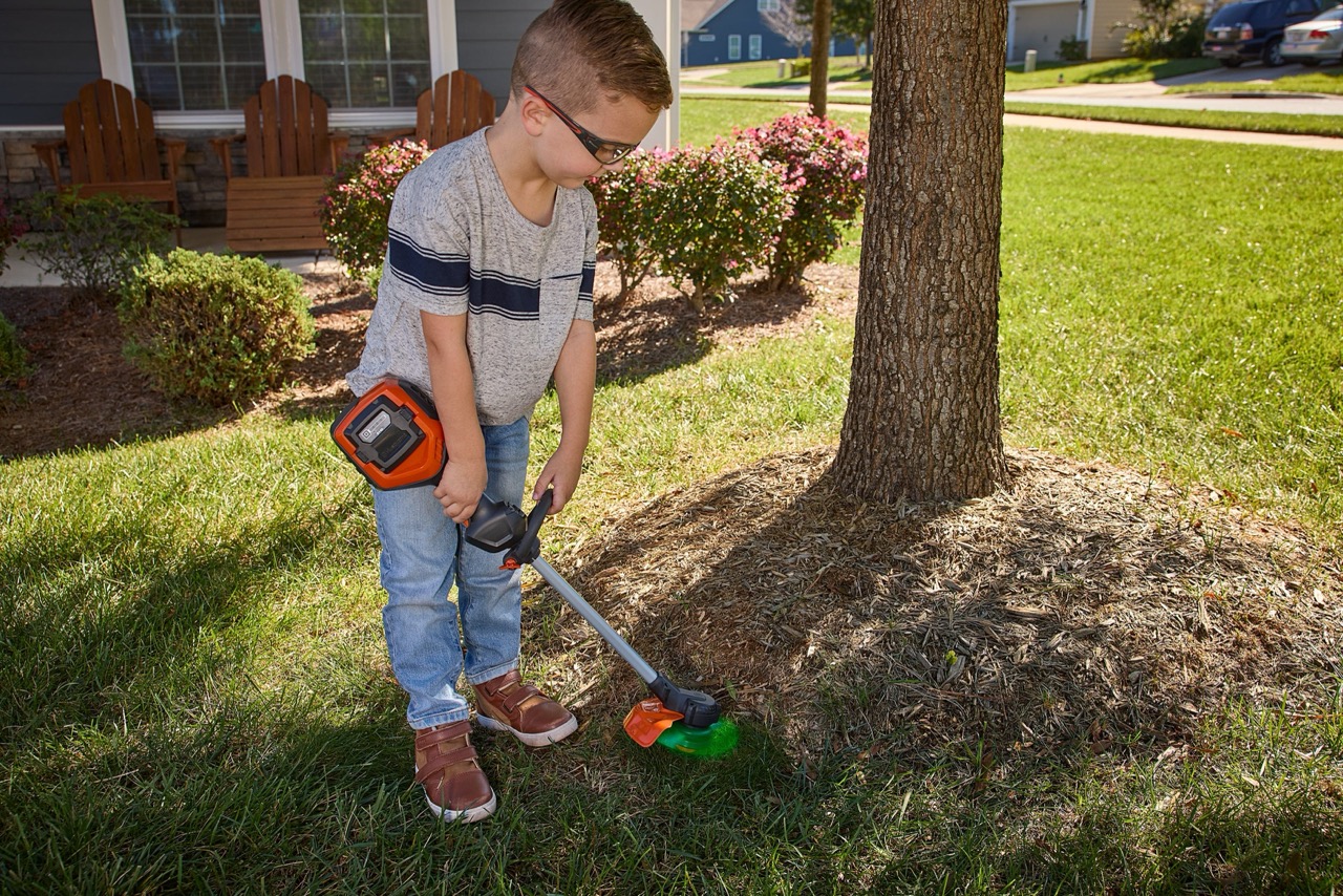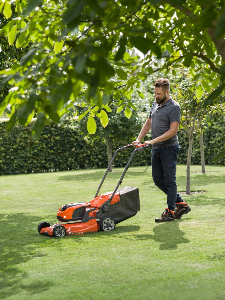 En gräsklippare som man skjuter framför sig används för att klippa gräset jämnt och hålla gräsmattan välskött. De finns både som bensindrivna modeller för större ytor och batteridrivna modeller som är tystare och smidiga för vanlig trädgårdsskötsel.