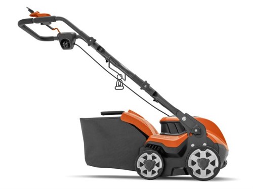 Med en arbetsbredd på 38 cm och ett fällbart handtag är denna vertikalskärare både praktisk och lätt att transportera och förvara.