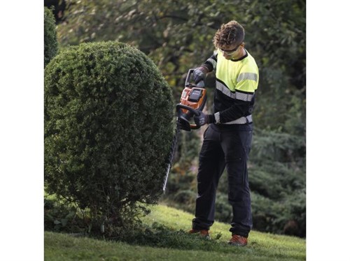 Utrustad med en höghastighetsväxel och en 60 cm dubbelsidig klippbalk med vassa trimknivar slipade på tre sidor, ger denna häcksax en enastående klippupplevelse.