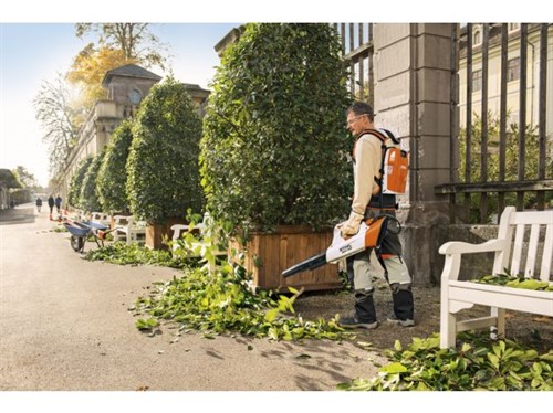 Den integrerade öglan gör att du kan hänga blåsen på en krok när du inte använder den. Med det extra platta munstycket kan du enkelt rikta en kraftigare stråle för att ta bort envis smuts. Du kan använda hölster AP med anslutningskabel, bärsystem eller ryggbatteri AR för att köra blåsen. Gör din trädgårdsarbete till en dröm med denna fantastiska batteridrivna lövblås.