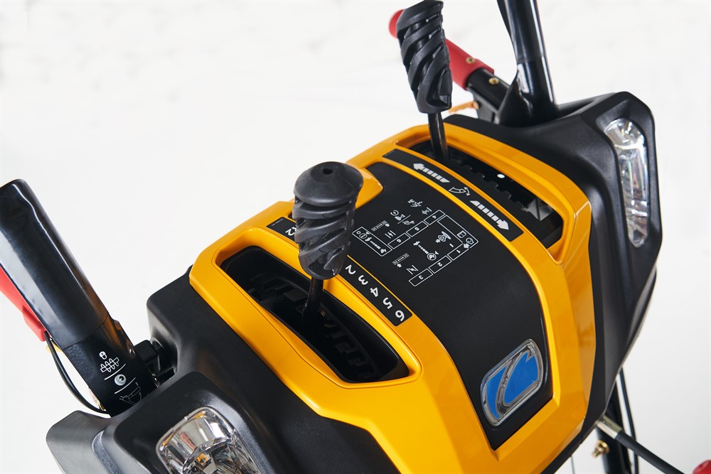 Den bekväma fingertoppsstyrningen gör att man ansträngningslöst kan styra vilket håll snöslungan ska svänga åt genom att trycka in ett enkelt reglage vid handtaget.